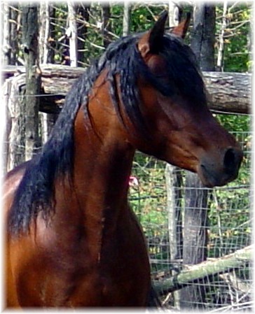 Amir El Rashid's dam is *MB Jamillsa, one of JEVA Farm's best producing broodmare, sired by a *Jamilll grandson and out of a *Jamilll grandddaughter. *MB Jamillsa is a culmination of the best attributes of her ancestors - her pedigree has been expertly blended. Her disposition is much like that of her grandam and great-grandam, Hanan, as described in Dr. Nagel's book entitled "Hanan: The Story of an Arabian Mare and of the Arabian Breed". Her head can accurately be described as extreme and exotic with a large, dark, soft, eye. Her muzzle fits perfectly into the cup of a woman's hand and her features are that of overall quality and refinement. Her thin, supple skin is covered by a soft, fine, shiny coat that sheds out to a "clipped" finish. She was foaled in 1995, is straight Egyptian, Al Khamsa and bay in color standing at 15 hands. She is graceful and elegant with superb performance potential because of her free moving shoulders, incredible reaching trot and her ability to drive deep under herself for impulsion. Jamillsa has a long, slender neck with extraordinary flexion, good overall balance, straight legs and a good croup. An outstanding producer for JEVA Farms and their most honored brodmare. The sire side of Jamillsa's pedigree is chock full of champions and champion producers: She is sired by Imperial Saturn, a 1994 United States National Top Ten Champion Stallion, a 1995 and 1996 Egyptian Event Reserve Champion in Country English Pleasure Jr. horses and Open respectively as well as finishing 3rd on the cards in Region 9 Ladies Western Sidesaddle Open(only his 2nd time shown in this class!) behind the National and Reserve Champions. . He is also a multi-champion in western pleasure with several championship halter titles. Imperial Saturn was sired by *Ibn Safinaz, a National Top Ten Stallion and performance champion. *Ibn Safinaz sired the 1992 United States Reserve National Champion Futurity Stallion, Muzac, and a 1995 United States National Top Ten Stallion, MB Mistaz, as well as many other champions both in performance and halter classes. His get continue to accumulate championships to his credit. Imperial Saturn is out of Imperial Mistilll, who has produced champion after champion earning the title of Imperial Egyptian Stud's most famous broodmare. Imperial Mistilll was sired by *Jamilll a United States National Top Ten Champion Stallion, a competitive dressage mount in Germany and a son of the incomparable mare, Hanan, of Dr. Hans Nagel's Katherinenhof Stud. Hanan is the dam and grandam of some very well-known arabians and her influence spans the World. In her lifetime, she produced 11 foals, including the aforementioned *Jamilll. She is the dam of Asfour, of the famous Simeon Stud in Australia. Asfour is the sire of World Reserve Senior Champion Stallion, Simeon Sadik and Ibn Galal I, the sire of *Ibn Galal 1-7, a United States Top Ten National Champion Mare. Hanan is also the dam of Salaa El Dine the sire of the more recent import, *Shahir, who is also a multi-champion stallion. *Jamilll's sire is Madkour I the 1972 and 1982 National Champion Stallion of West Germany as well as a multi-National Champion producing sire. Imperial Mistilll's dam is Ansata Nile Mist who was sired by the first straight Egyptian United States National Champion Stallion, Ansata Ibn Sudan. Ansata Nile Mist was out of Falima who was sired by the very famous and multi-Champion National Top Ten Stallion, *Ansata Ibn Halima. The dam's side of Jamillsa's pedigree is equally impressive. *MB Jamillsa is out of the *Jamilll daughter, Bint Jamilla* who was exported to Australia in 1997. Bint Jamilla is out of the *Ansata Ibn Halima daughter, Monisa Halima a beautiful flea-bitten grey mare who's dam AK Monisa Moniet sold for $560,000.00 at the Bentwood Spectacular sale in the 80's and with good reason. AK Monisa Moniet was sired by *Ibn Moniet El Nefous another National Top Ten Champion Stallion, performance champion as well as multi-National Champion producing sire. AK Monisa Moniet was out of Monisa RSI who was sired by the performance producer *Rashad Ibn Nazeer and out of none other than the famous, *Bint Moniet El Nefous, who was the only direct daughter of Moniet El Nefous ever exported from Egypt. *Bint Moniet El Nefous hails from one of the most prolific mare lines in the World, Moniet El Nefous.
